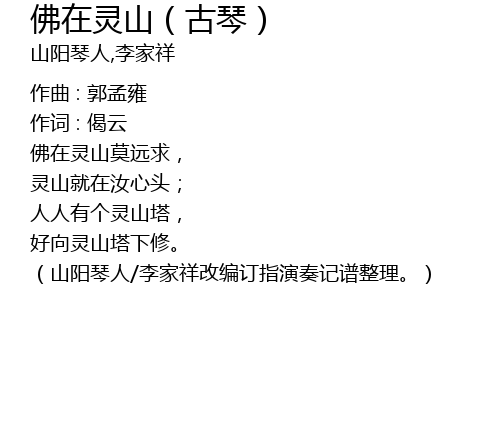 | (山阳琴人/李家祥改编订指演奏记谱整理。) |