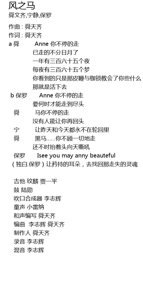 | b bǎo luó Anne nǐ bù tíng de zǒu | |