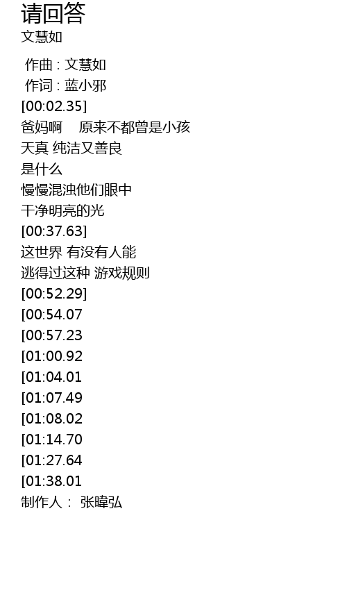 | [00:00.000] | zuò qǔ : wén huì rú |