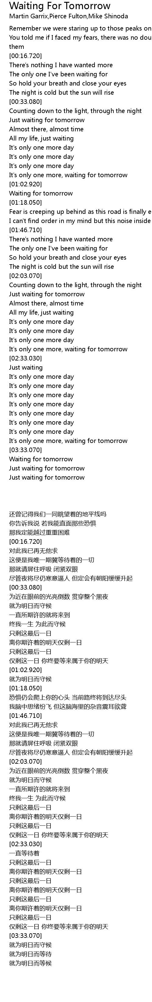 It's only one more, waiting for tomorrow |