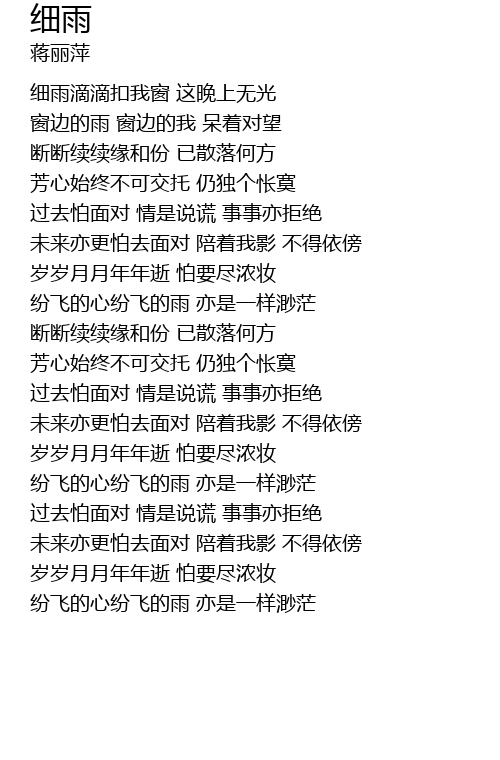 | [01:36.03] | 纷飞的心纷飞的雨 亦是一样渺茫 |