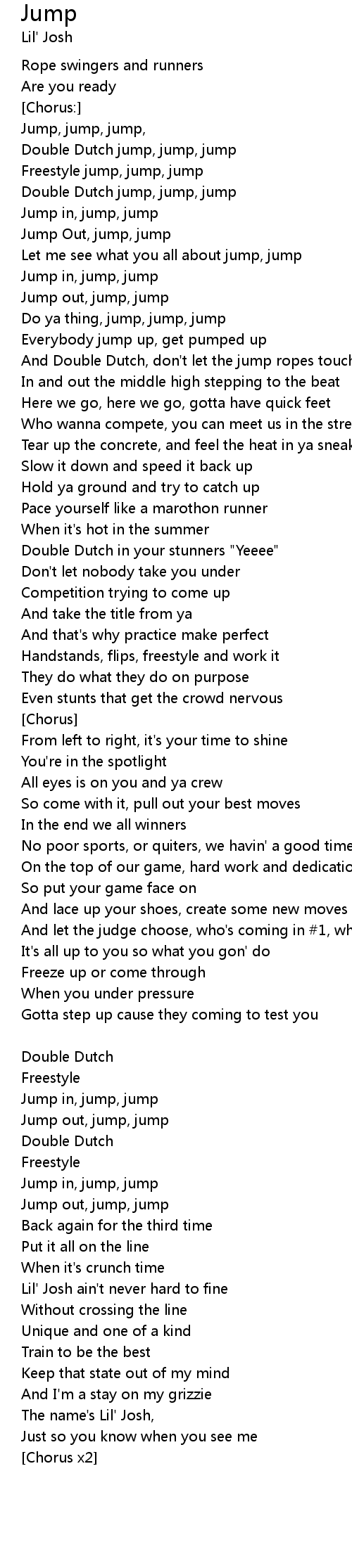 | Jump, jump, jump, | |
