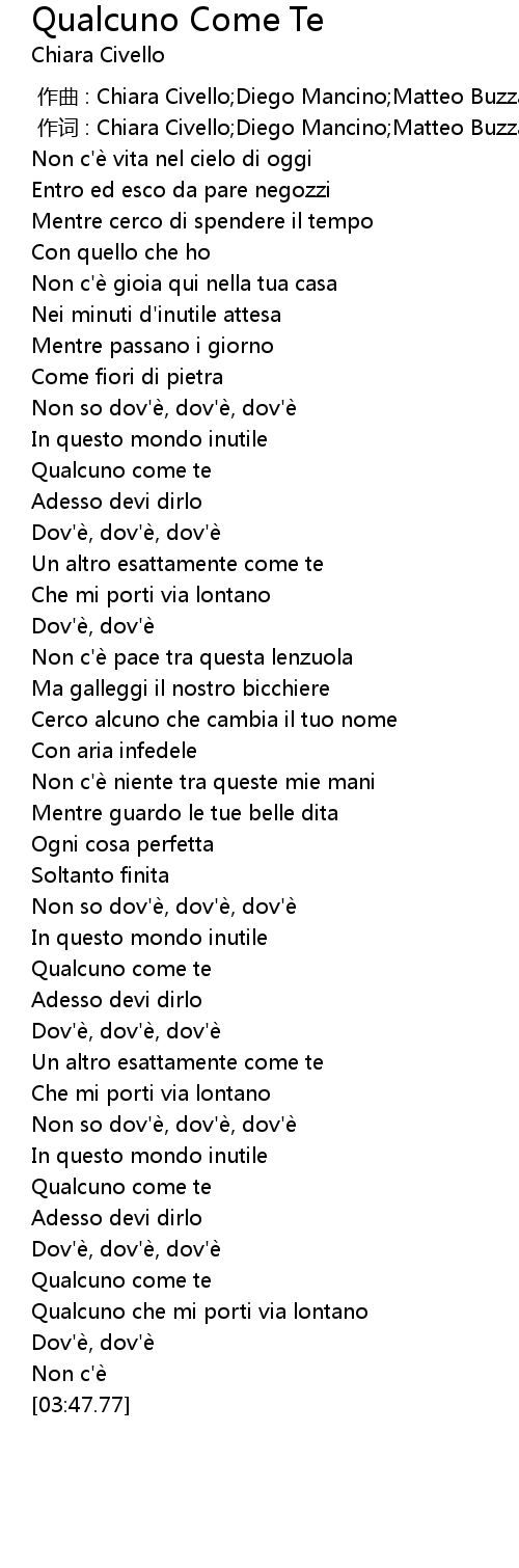 | [02:51.62] | Dov'e, dov'e, dov'e |