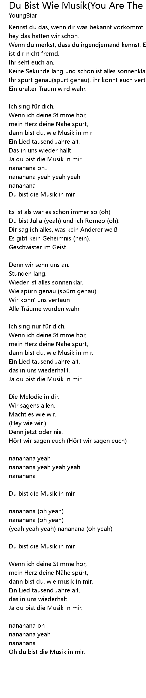 | Song | Du Bist Wie Musik(You Are The Music In Me-german) |