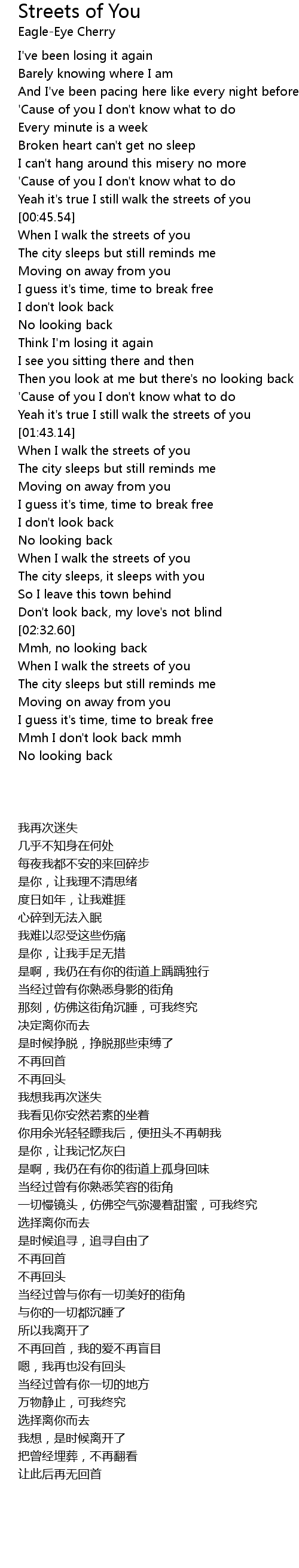 Yeah it's true I still walk the streets of you |
