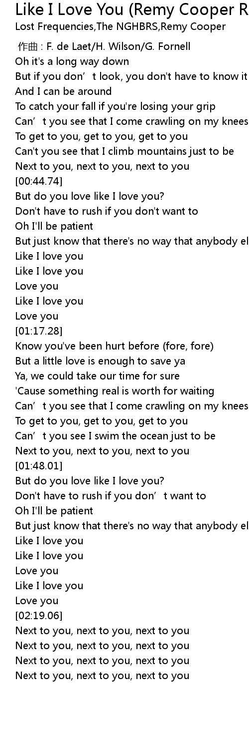 | [01:58.41] | But just know that there' s no way that anybody else could love you |