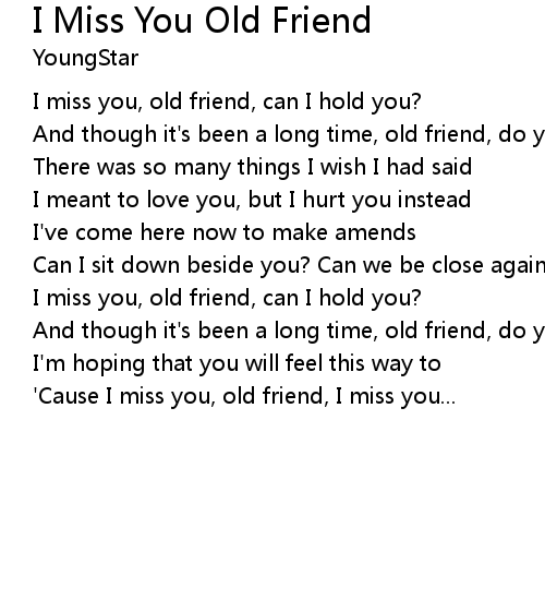 | 'Cause I miss you, old friend, I miss you... |