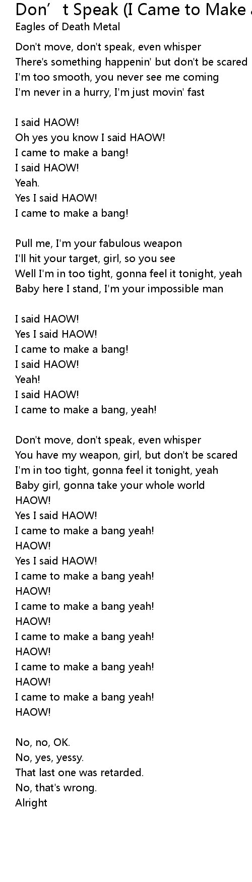 | Song | Don’t Speak (I Came to Make a Bang!) |