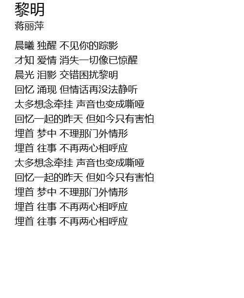 | [00:14.10] | 晨曦 独醒 不见你的踪影 |