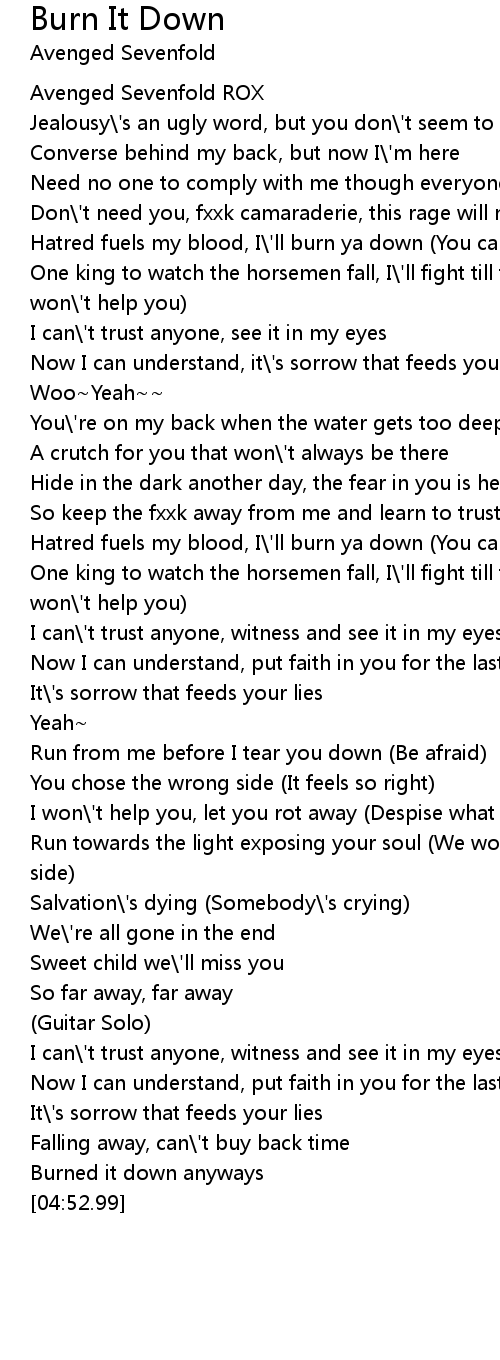 Hatred fuels my blood, I\'ll burn ya down (You can\'t help me) |