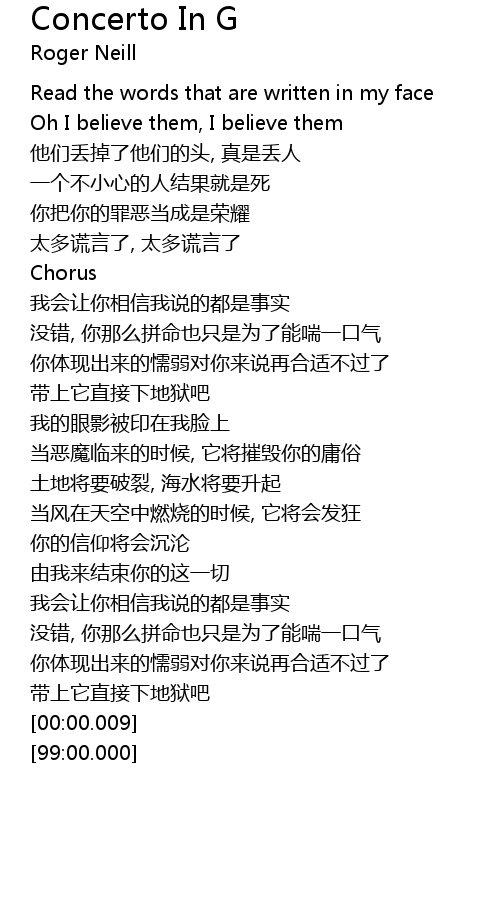 | [01:22.34] | wǒ huì ràng nǐ xiāng xìn wǒ shuō de dōu shì shì shí |