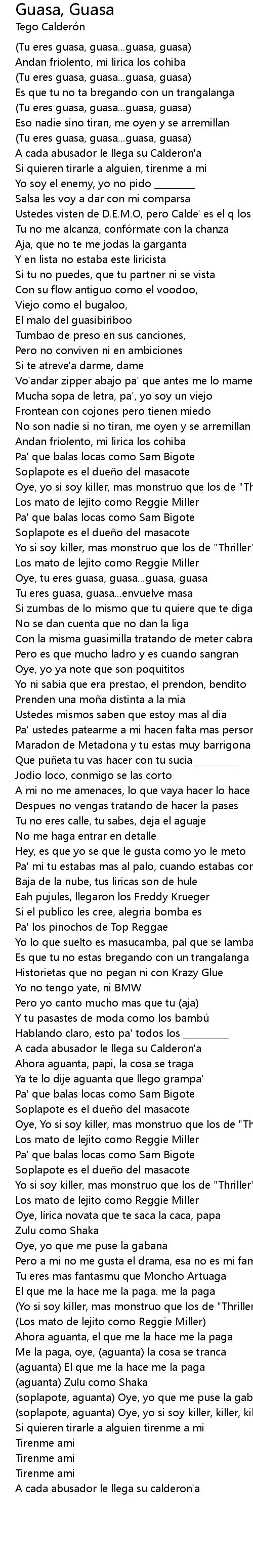 | (Tu eres guasa, guasa...guasa, guasa) | |