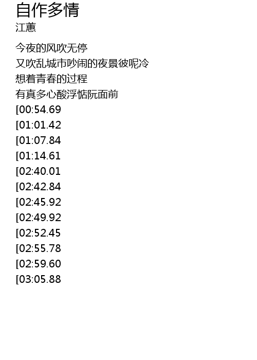 | [03:06.37][02:40.01][01:21.10] | a fen fen rao rao feng feng yu yu |