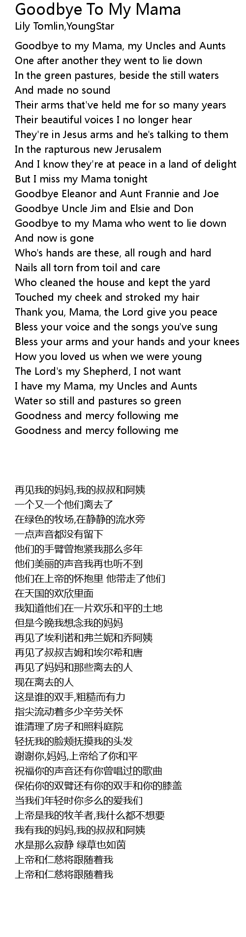 Goodbye to my Mama who went to lie down |