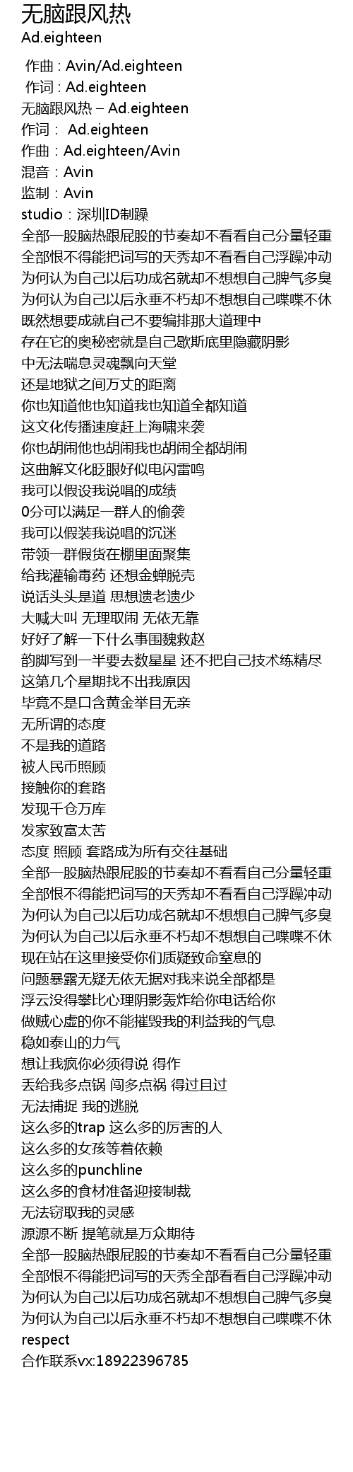 | [00:04.188] | 无脑跟风热 – Ad.eighteen |