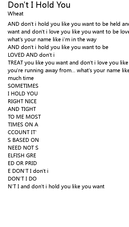 AND don't i hold you like you want to be held and don't i treat you like you want and don't i love you like you want to be loved and you're running away and what's your name like i'm in the way |