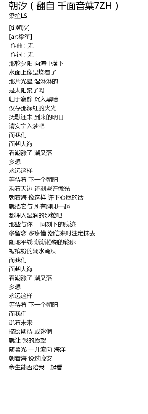 | [01:34.97] | kàn cháo zhǎng le cháo yòu luò |
