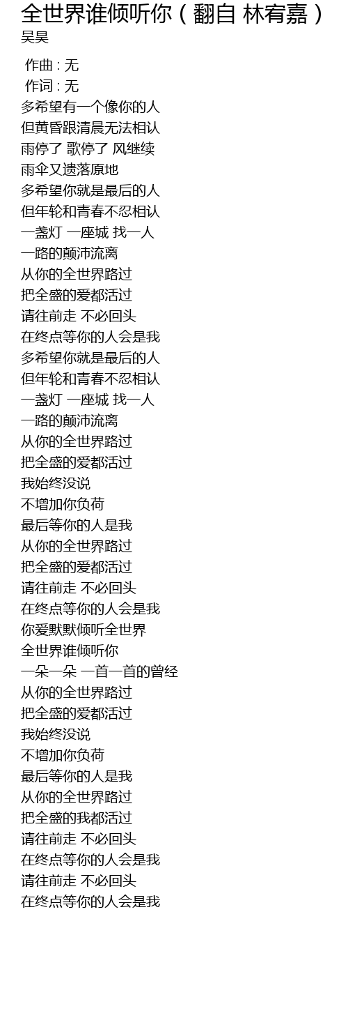 | [02:52.571] | quán shì jiè shuí qīng tīng nǐ |