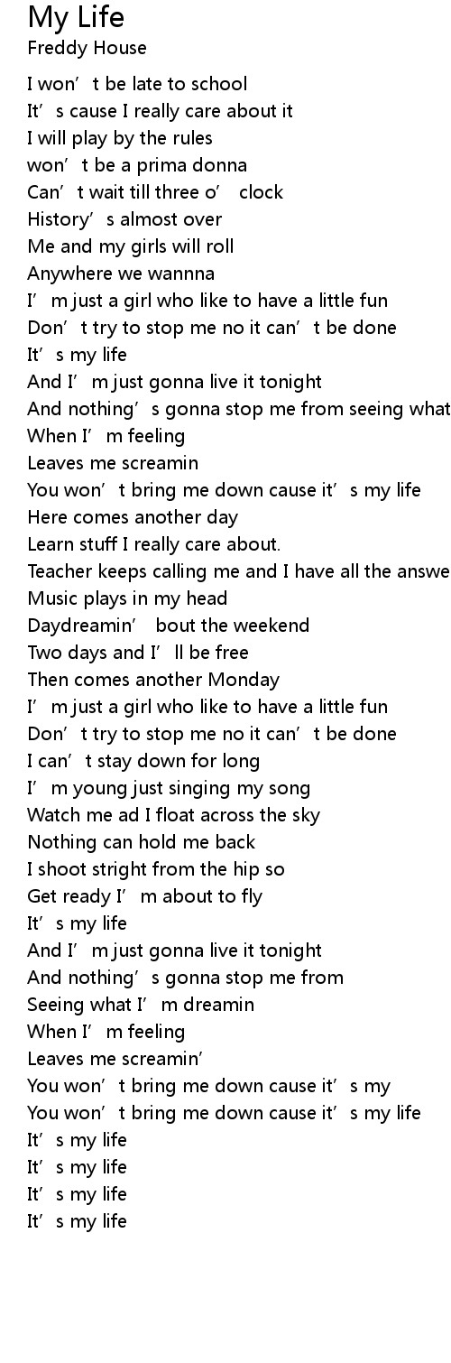 | [00:53.43] | You won' t bring me down cause it' s my life |
