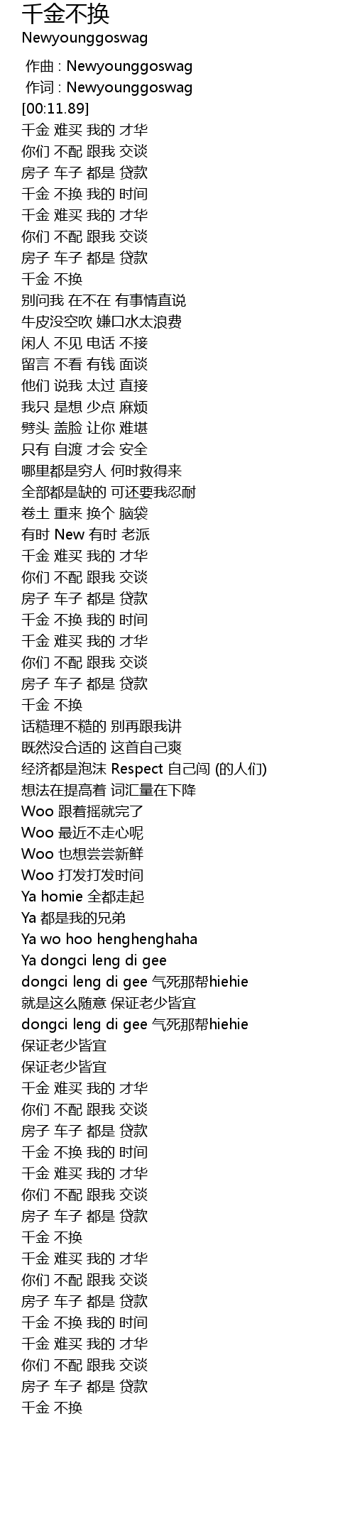 | [03:11.16] | qiān jīn bù huàn wǒ de shí jiān |