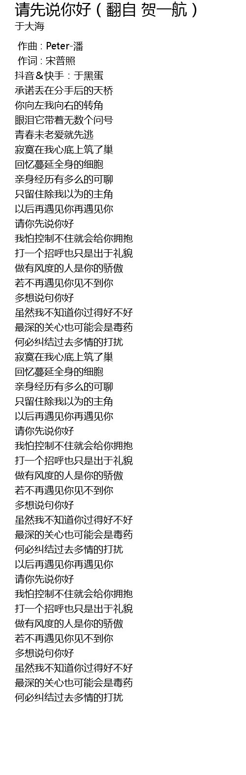 | [02:43.36] | qǐng nǐ xiān shuō nǐ hǎo |