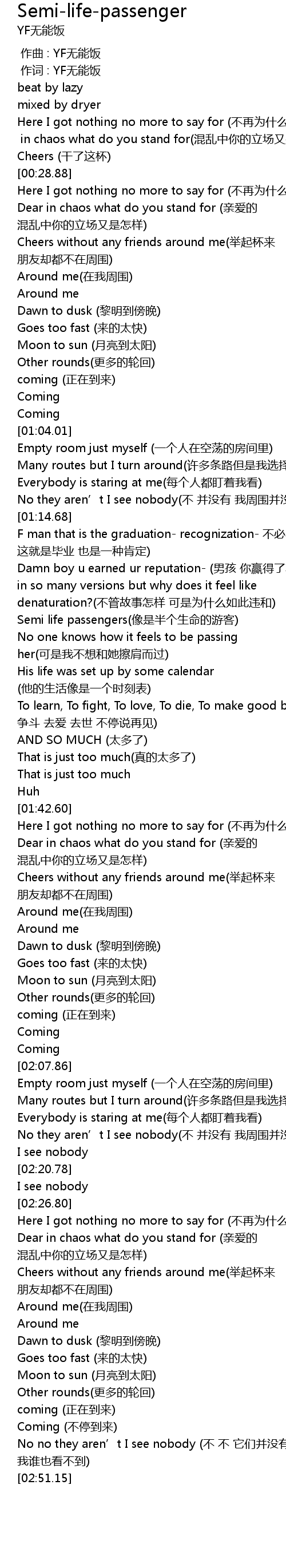| [00:01.000] | 作词 : YF无能饭 |