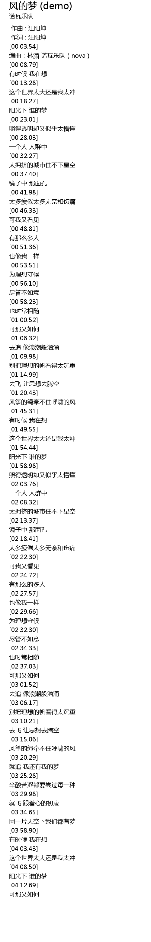 | [00:05.30] | 编曲:林潇 诺瓦乐队(nova) |