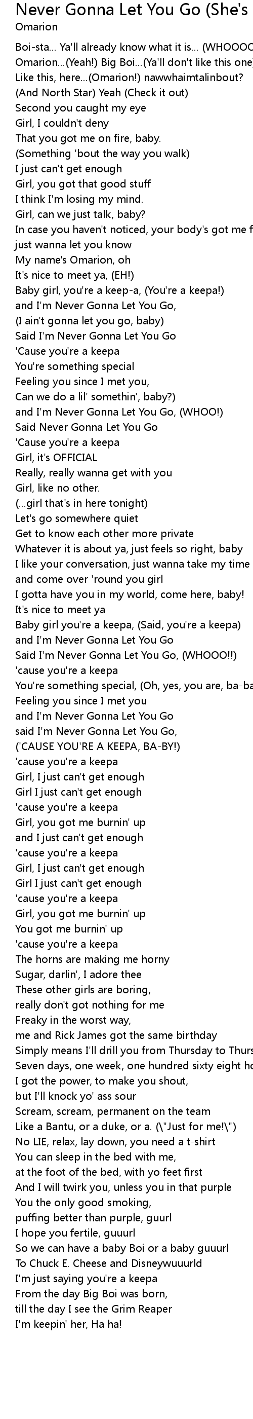 Said I'm Never Gonna Let You Go, (WHOOO!!) |