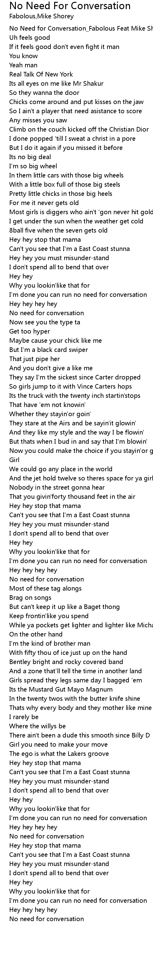[00:00.590] No Need for Conversation_Fabolous Feat Mike Shorey -Coach Carter