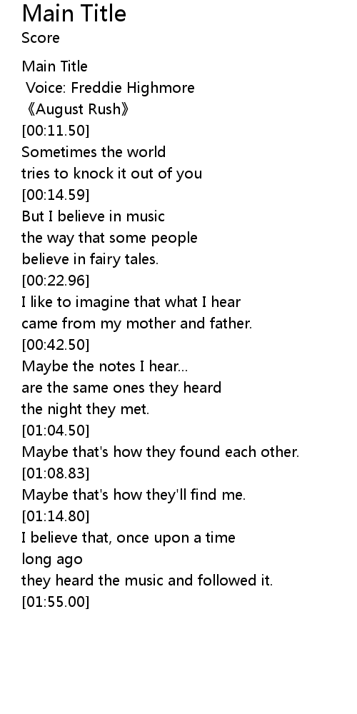 | [00:09.00] | August Rush |