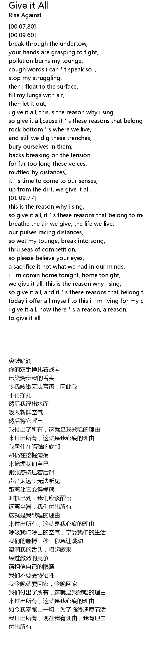 | [02:03.34] | we give it all, this is the reason why i sing, |