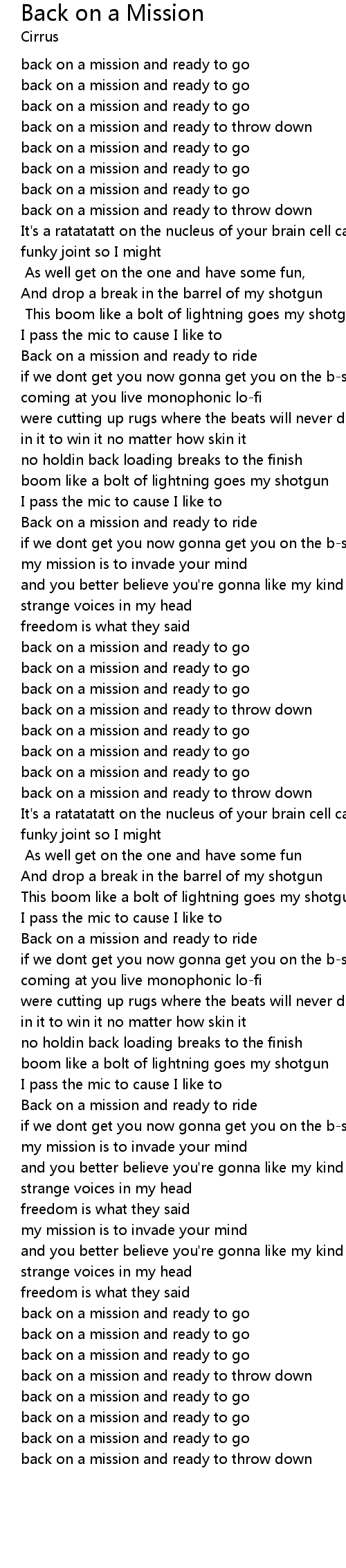 Back on a Mission Lyrics