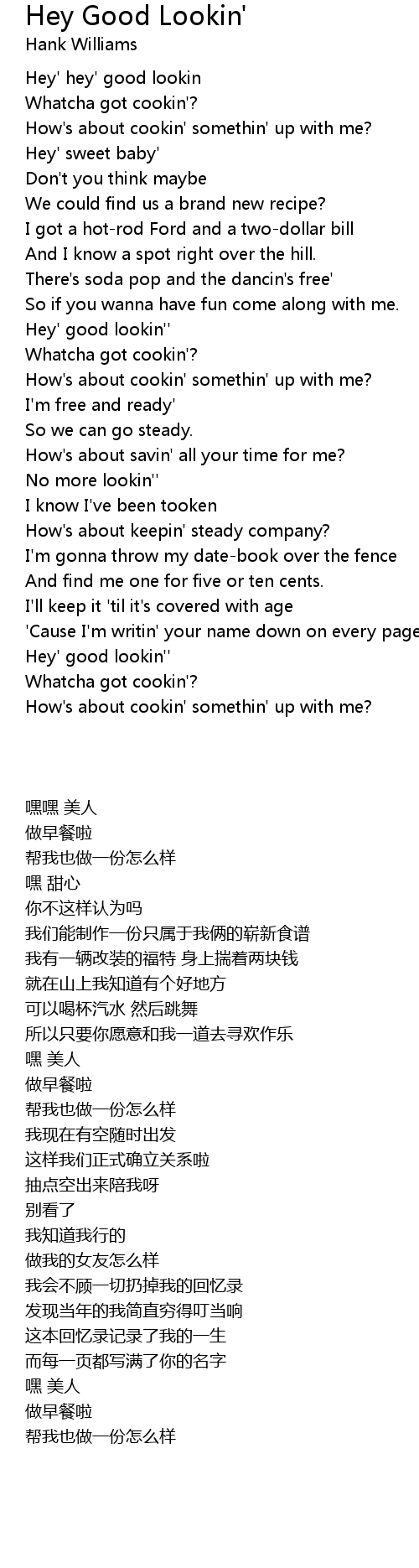 Hey' hey' good lookin |
