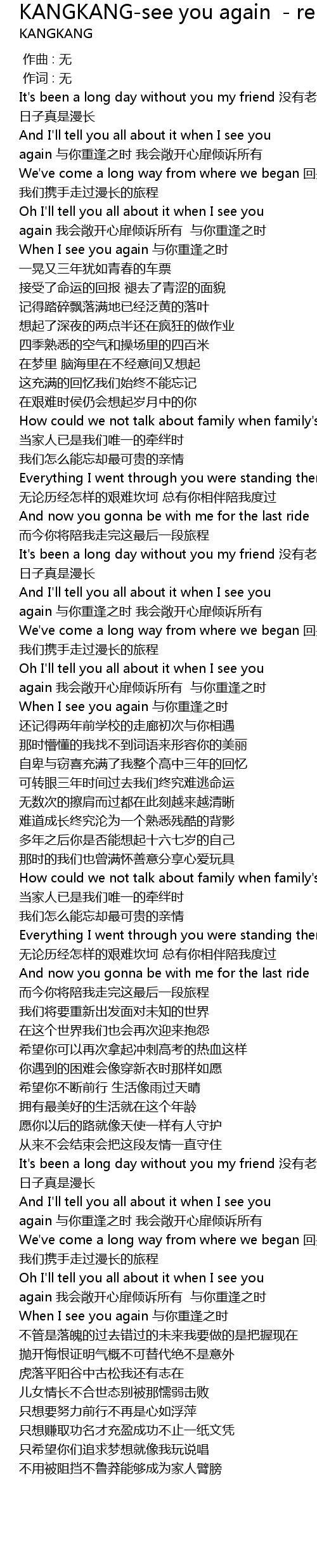 | [00:35.040] | When I see you again 与你重逢之时 |