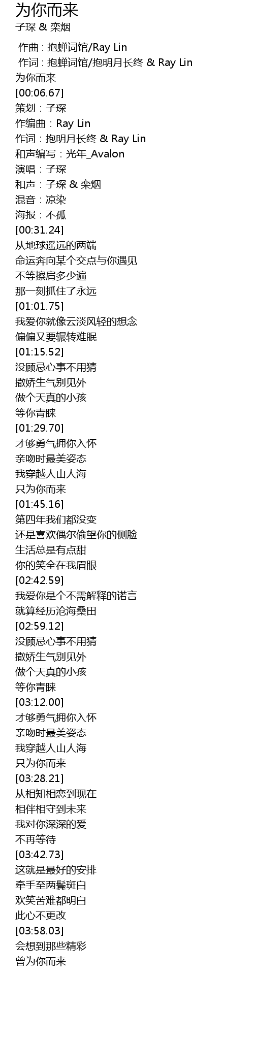 | [00:01.000] | 作词 : 抱蝉词馆/抱明月长终 & Ray Lin |