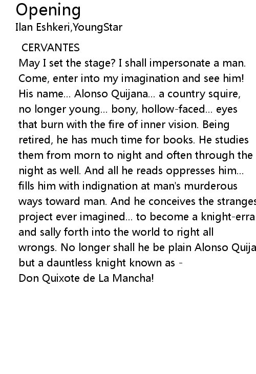 wrongs. No longer shall he be plain Alonso Quijana... |