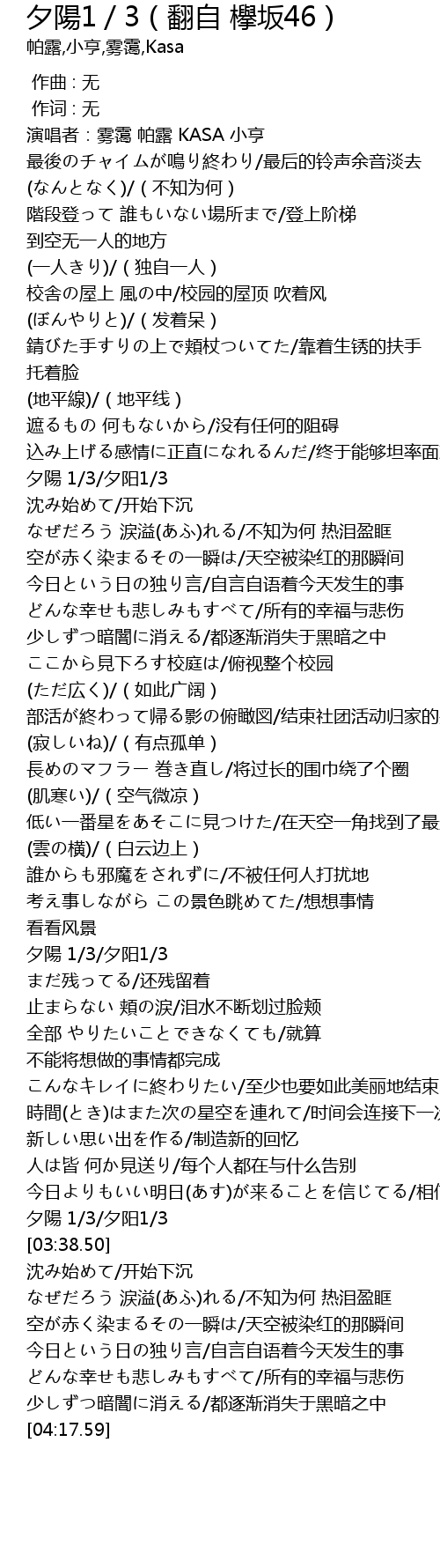 | [03:38.77] | 夕陽 1/3/夕阳1/3 |