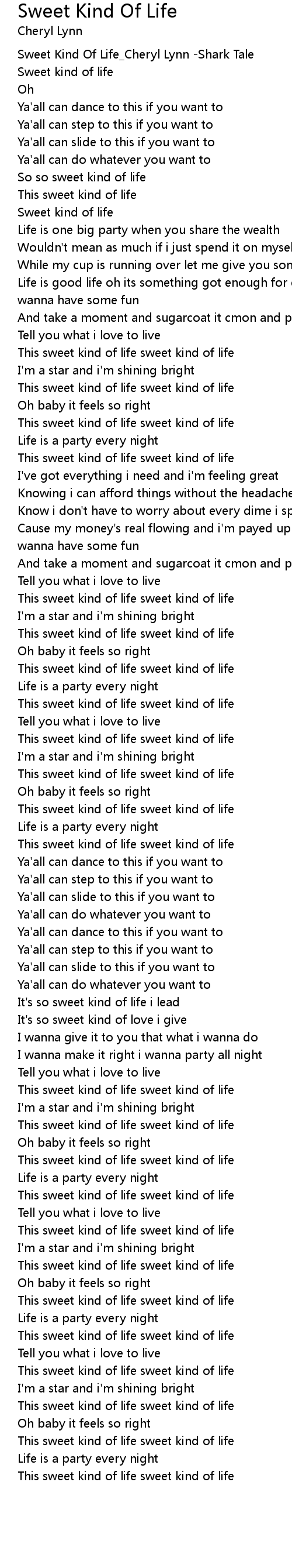 Sweet Kind Of Life_Cheryl Lynn -Shark Tale |