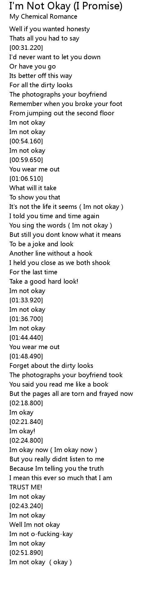 | [01:12.280] | It's not the life it seems(Im not okay) |
