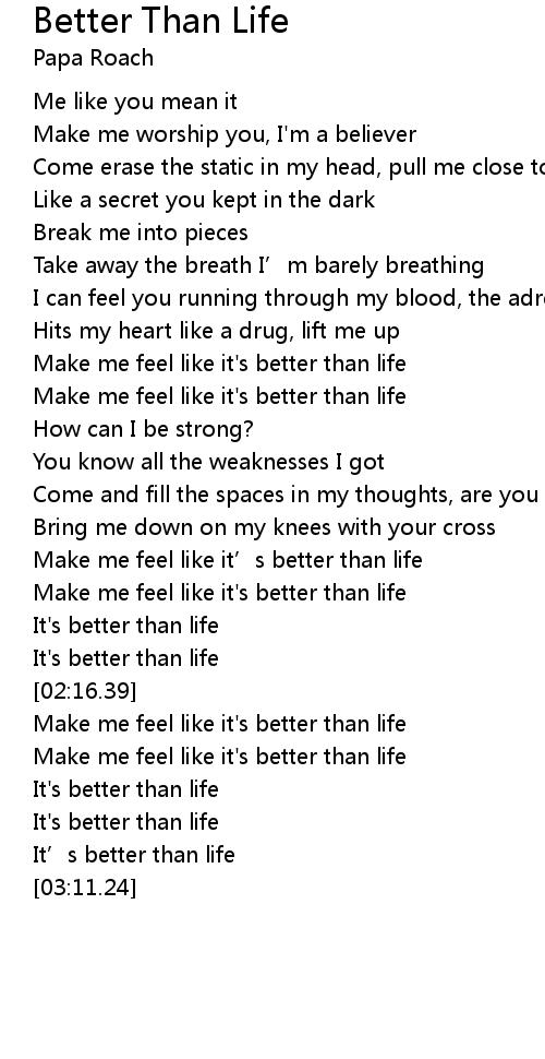 | [00:42.55] | Take away the breath I' m barely breathing |