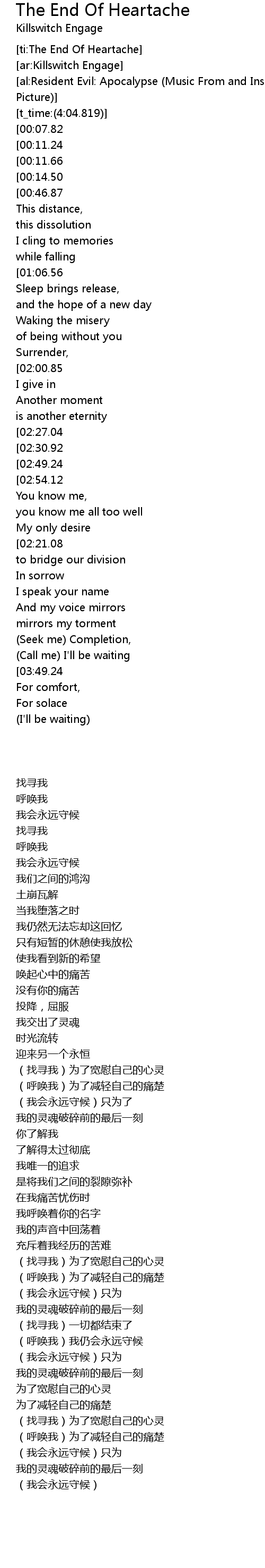 [ti:The End Of Heartache]