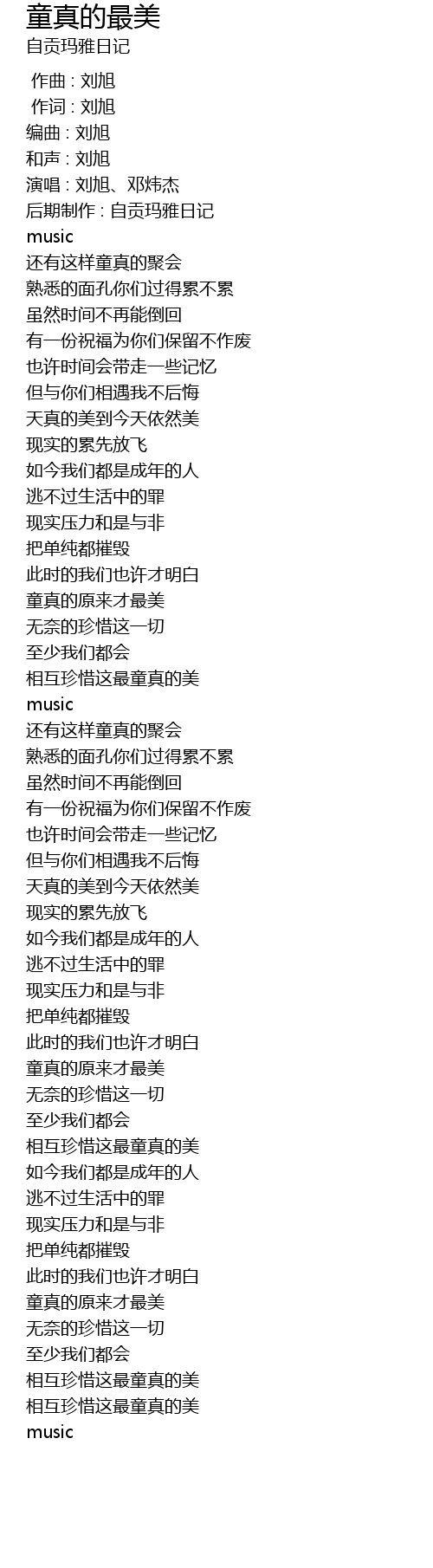 | [03:31.172] | tóng zhēn de yuán lái cái zuì měi |