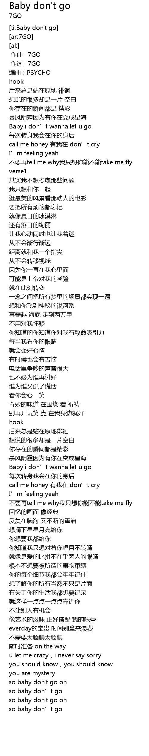 | [00:32.65] | call me honey you wo zai don' t cry |