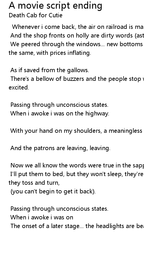 With your hand on my shoulders, a meaningless movement... a moviescript ending, |