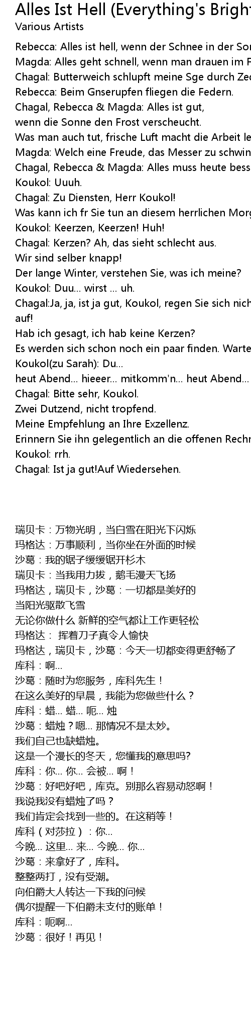 Chagal, Rebecca & Magda: Alles ist gut, |