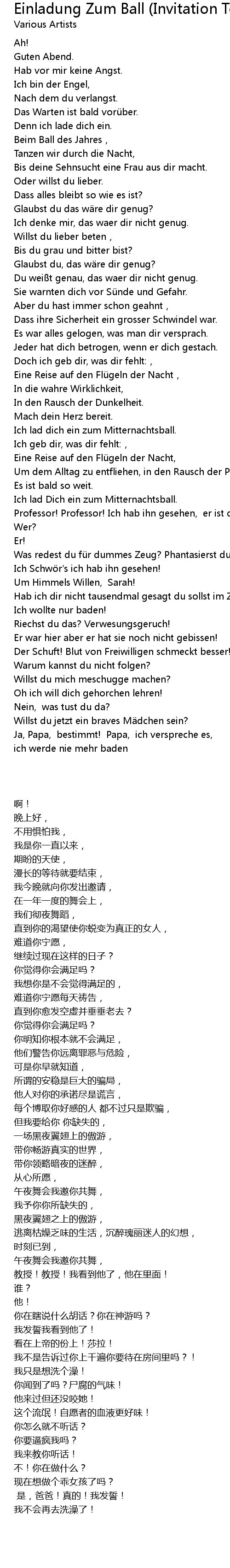 | [01:46.30] | Ich lad dich ein zum Mitternachtsball. |
