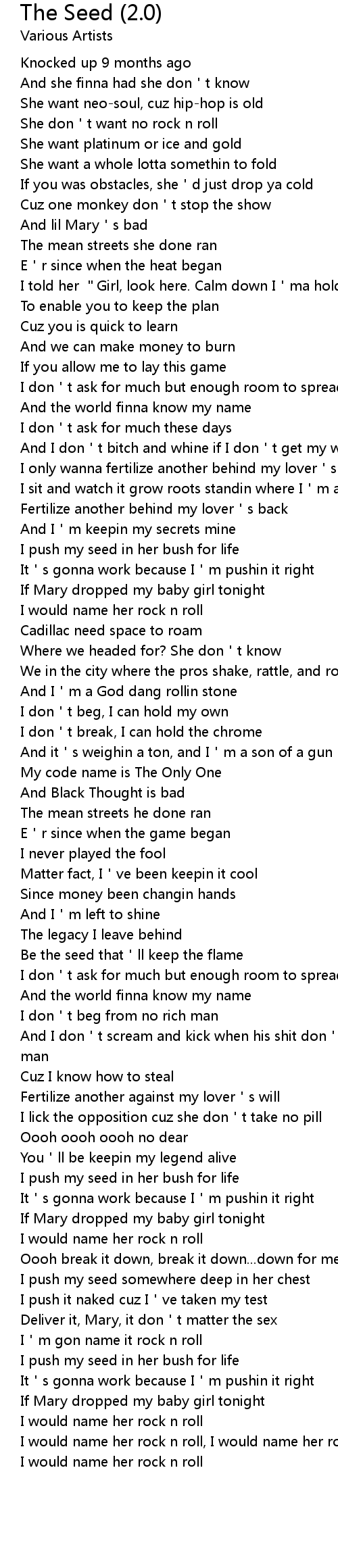 | [00:22.30] | She want neo-soul, cuz hip-hop is old |