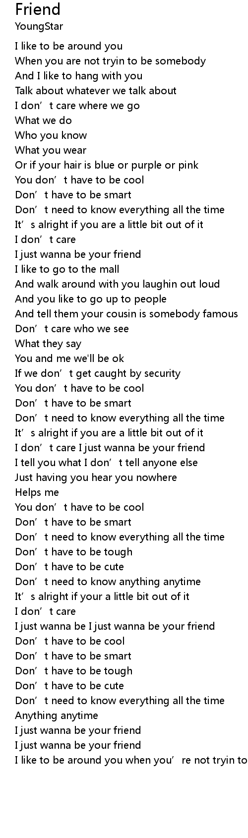 | [01:56.66] | I don’t care I just wanna be your friend |
