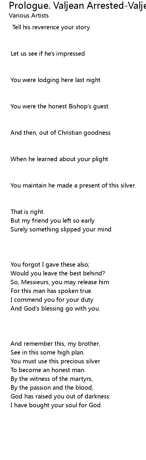 Prologue. Valjean Arrested-Valjean Forgiven Lyrics