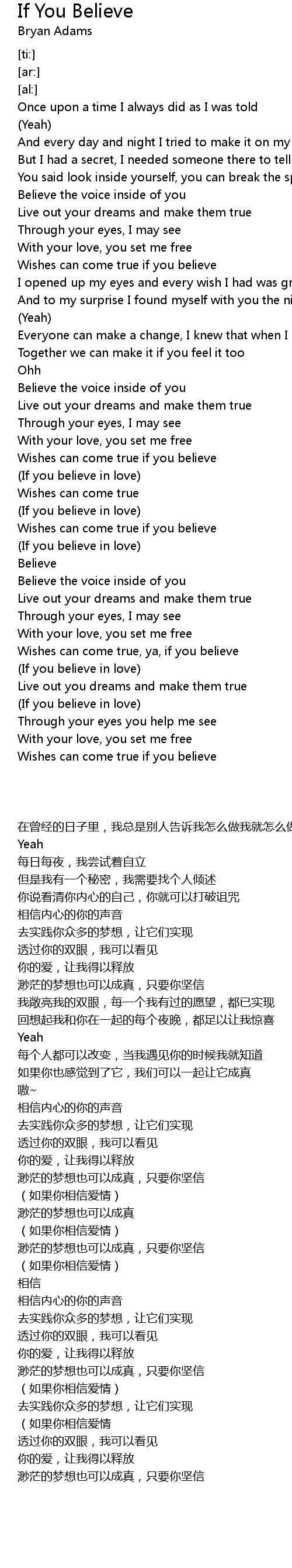Wishes can come true, ya, if you believe |
